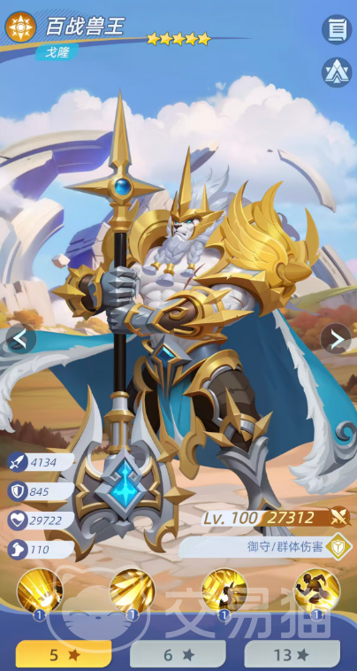 前排坦控一体角色选用百战兽王戈隆。其普通攻击在释放前自动提升20%暴击率,并转化为对敌方全体40%物理伤害,附带40%概率减速效果;技能命中后有50%概率降低目标伤害。更关键的是其被动复活机制:当受到致命伤害时,以当前生命上限20%的血量原地复活,并获得15%攻击力提升,确保前排站场时间与反打节奏。